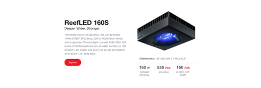 - Red Sea ReefLED 160S: A high-output premium aquarium LED light fixture designed for larger reef aquariums, ensuring deep light penetration necessary for corals in deeper tanks and promoting vibrant coloration. A sleek lighting solution.