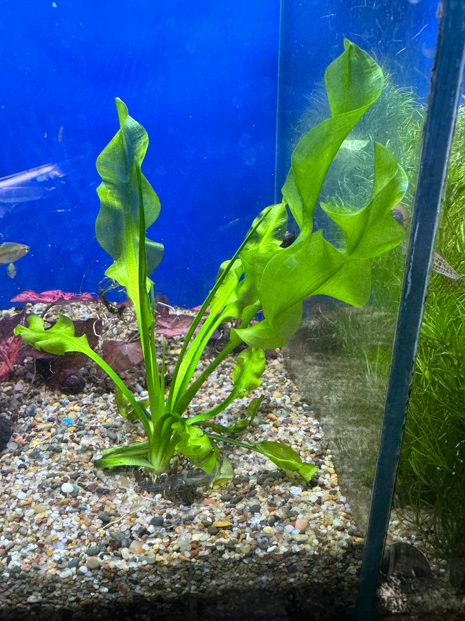 An unusual bulb plant. Long, seaweed-like leaves that twist and spiral! Great background plant for tall tanks, very light and flowy leaves for movement. (Item may not be exactly as pictured, but offers good representation of product.)